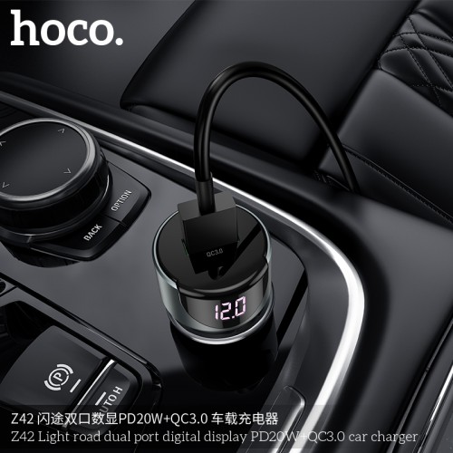 Z42 Light Road Dual Port Digital Display PD20W+QC3.0 Car Charger