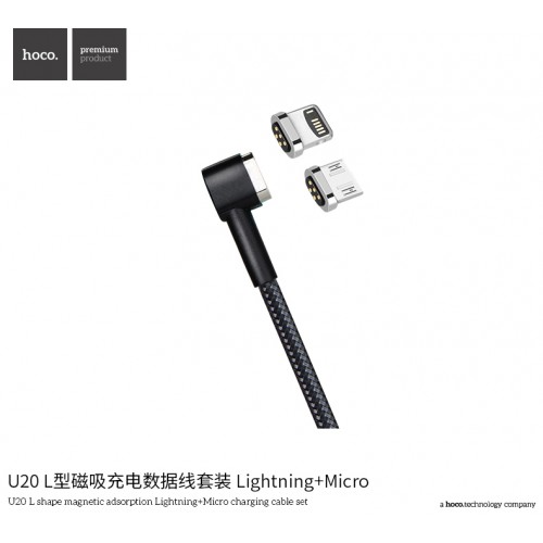 U20 L Shape Magnetic Adsorption Lightning+Micro Charging Cable Set